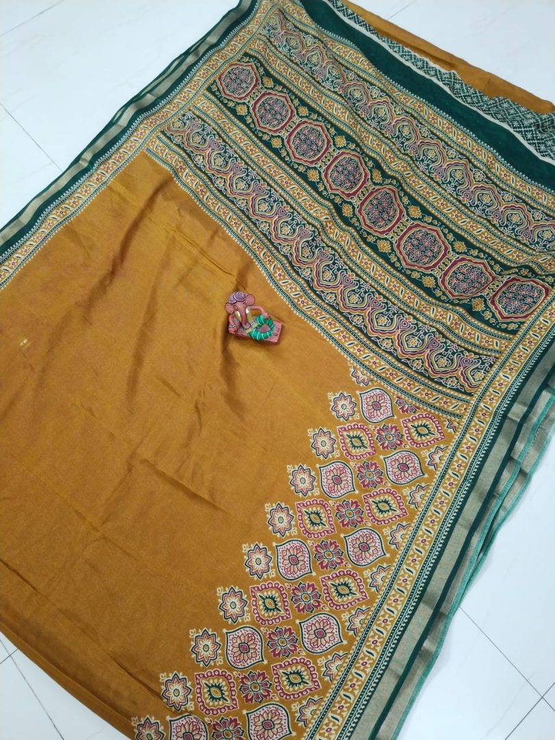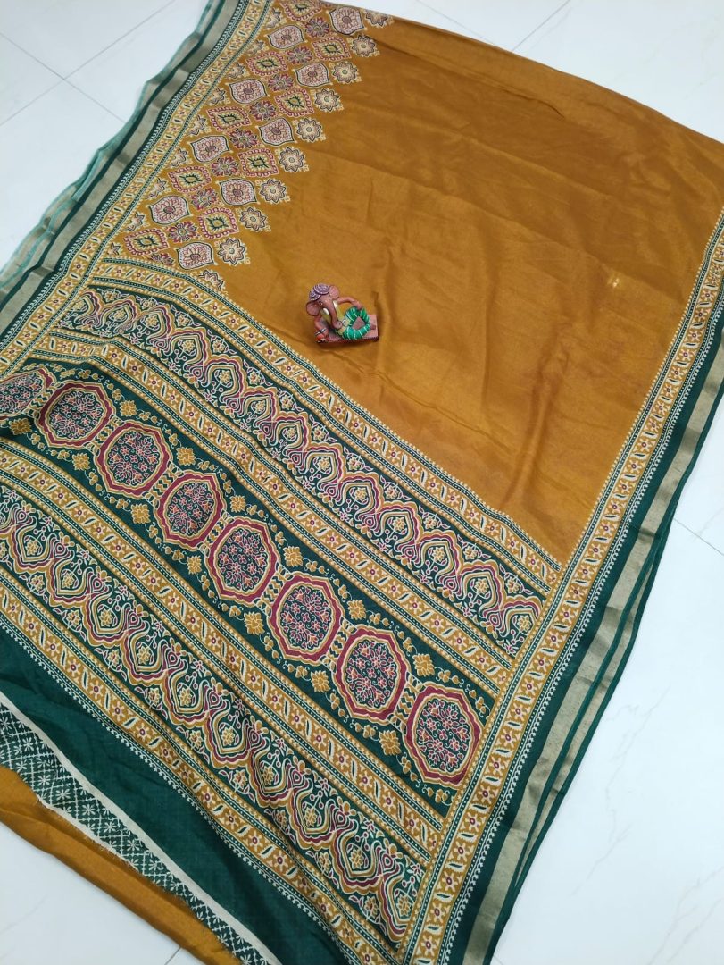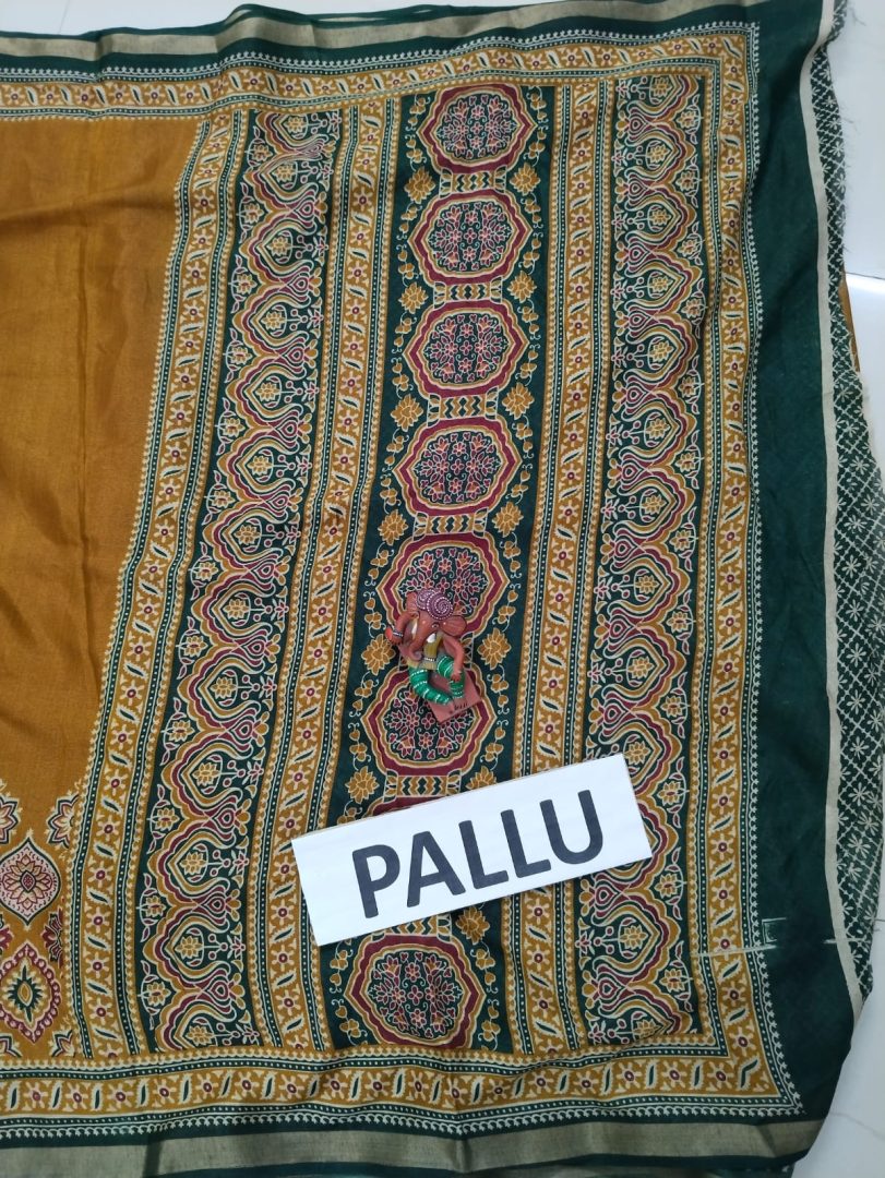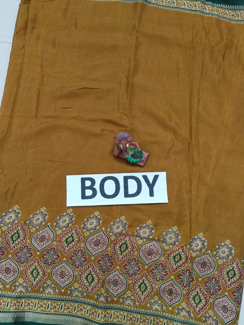 Color : Rusty Brown with Green border and pallu.