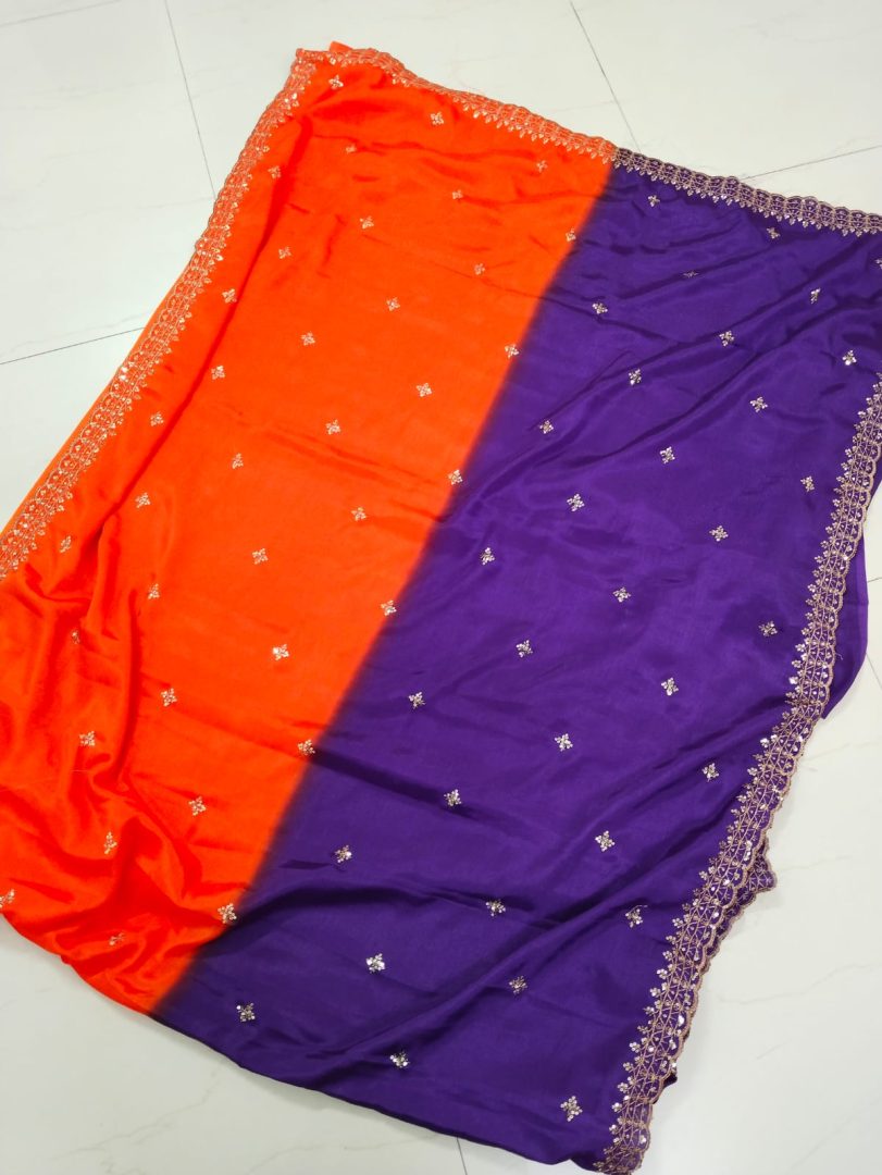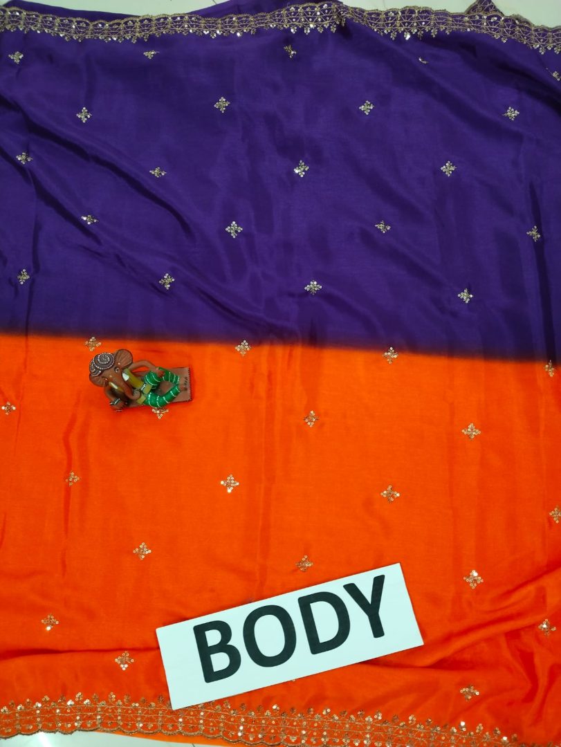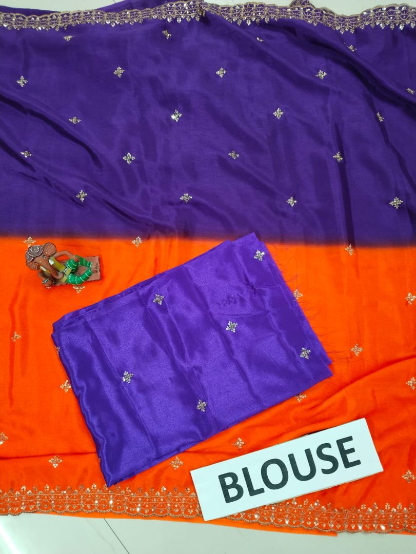 Design : Purple and Orange saree with Golden Thread embroidery all over the saree.