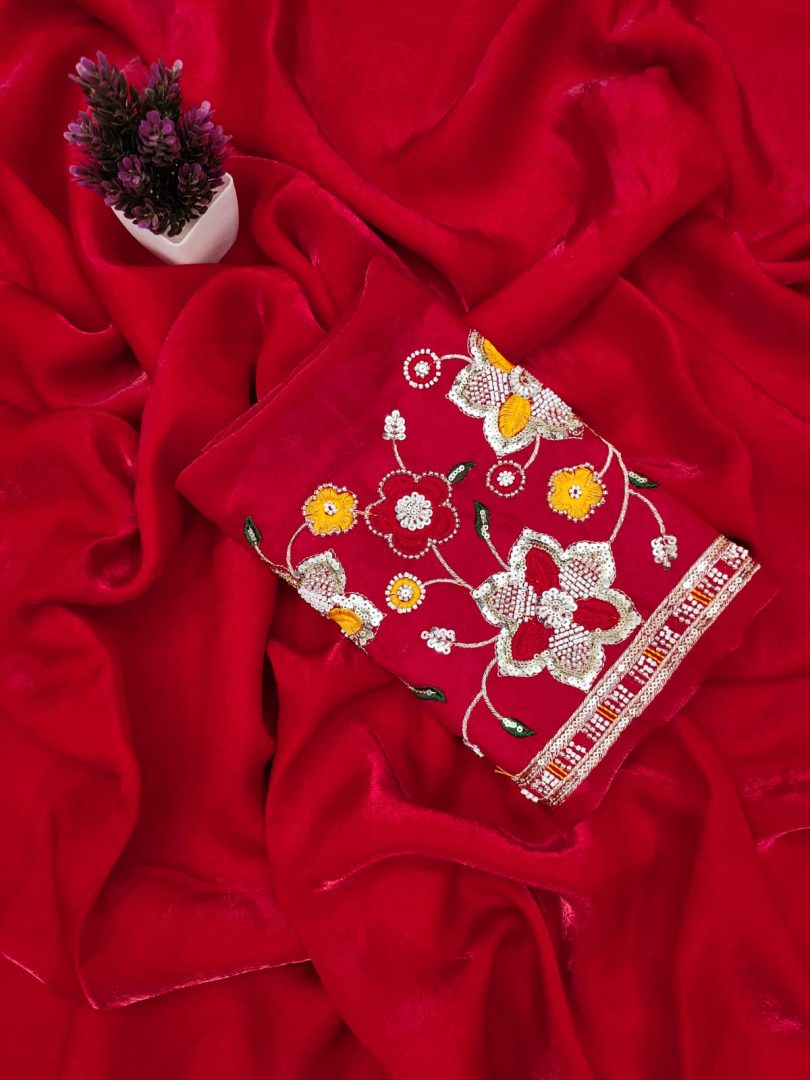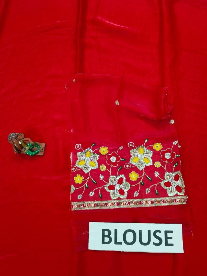 Colour : Red colour Saree with Red colour embroidery work Blouse.