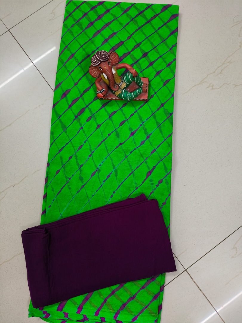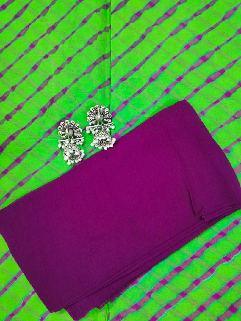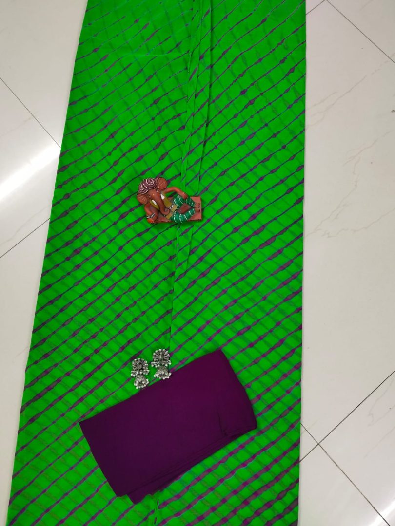 Design: Lehariya Pattern with Plain contrast blouse.